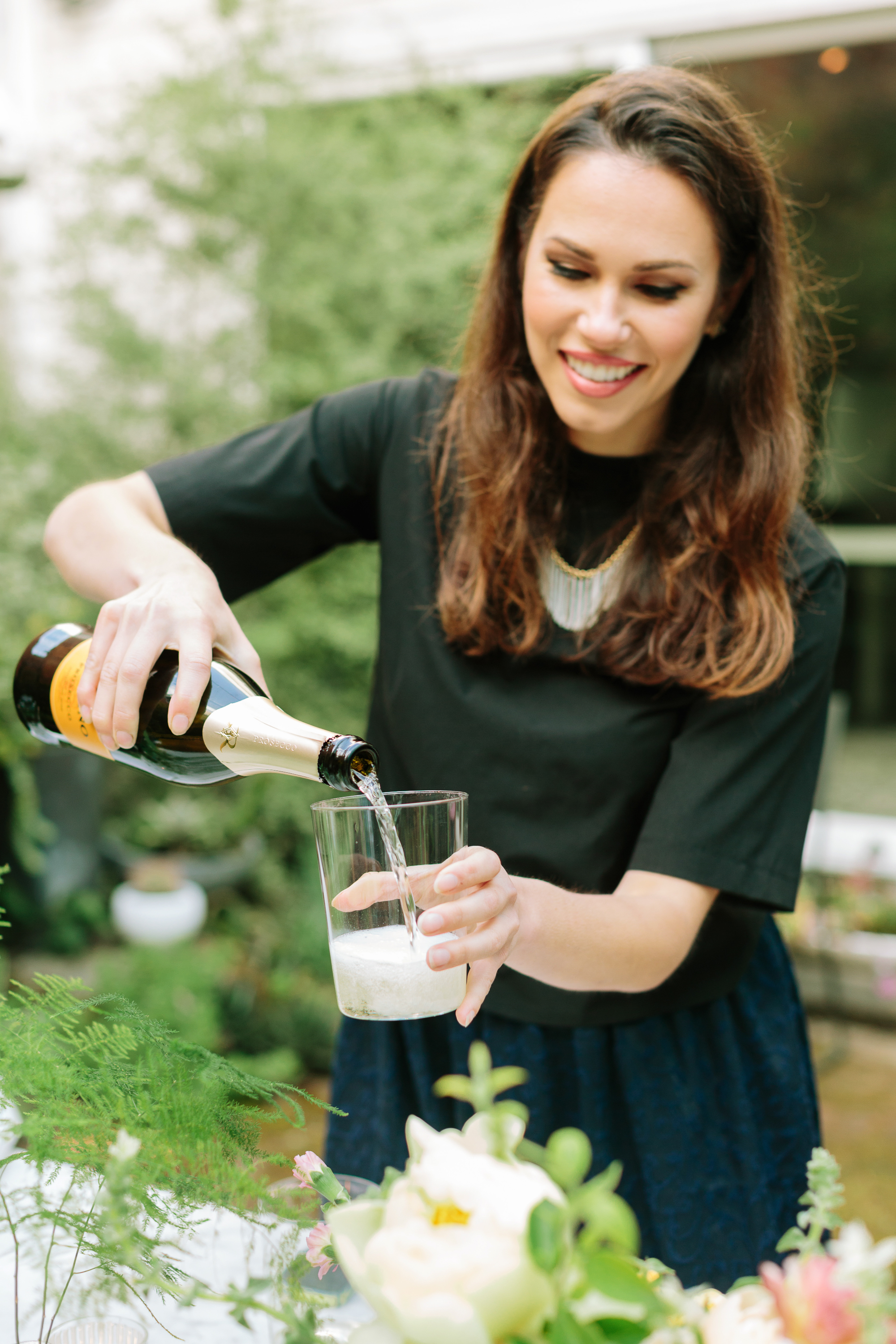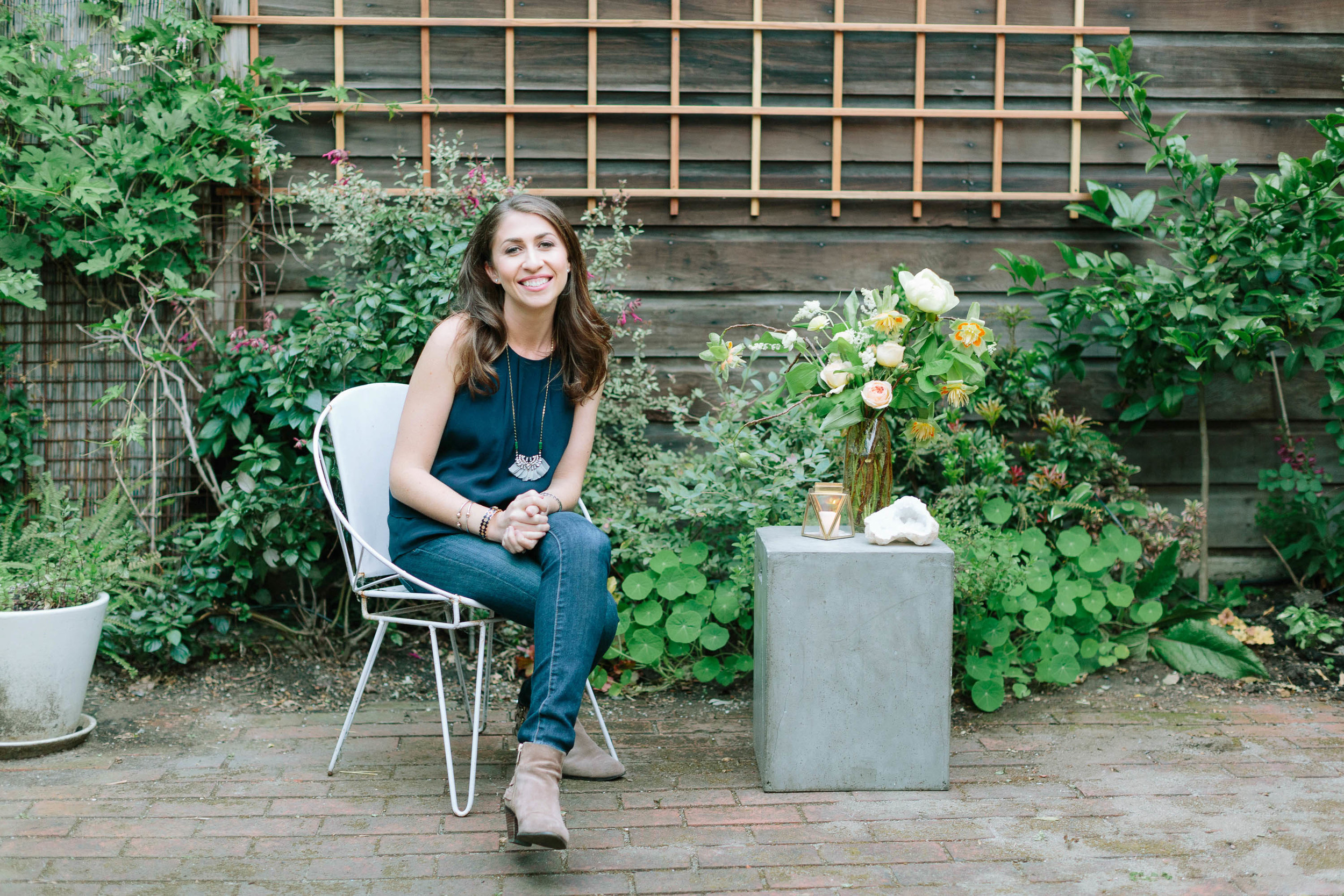 To help the table blend in even more with the courtyard setting, Amanda draped Hops across the backs of the chairs.